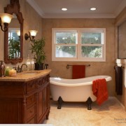 Ни для кого не секрет, что ванная комната обладает повышенной влажностью. В связи с этим сложился стереотип, что стены обязательно должны быть выложены кафелем, если не полностью, то хотя бы до половины. Благо, на дворе 21 век, и с появлением новейших материалов, позволяющих применить новые методы отделки поверхности, стали рушиться когда-то созданные стереотипы. Одним из таких материалов является декоративная Ни для кого не секрет, что ванная комната обладает повышенной влажностью. В связи с штукатурка, с помощью которой можно получить чудесную рельефную поверхность, тем самым обеспечив нестандартное эффектное оформление помещения, тем более, что цвет для этого можно подобрать самый произвольный. Сегодня для оштукатуривания стен используются специальные водостойкие материалы. Давайте рассмотрим поподробнее, чем же хороши эти материалы, а именно, декоративная штукатурка.