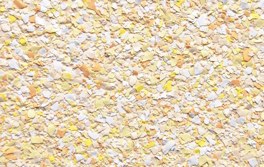 Флок (перевод с немецкого «flock» – снежинки, хлопья), или как его еще называют в простонародье «чипсы» – необычный вариант декоративного покрытия для внутренней отделки помещения. В состав материала входят цветные частички на основе акриловой краски, по форме действительно напоминающие хлопья или чипсы.