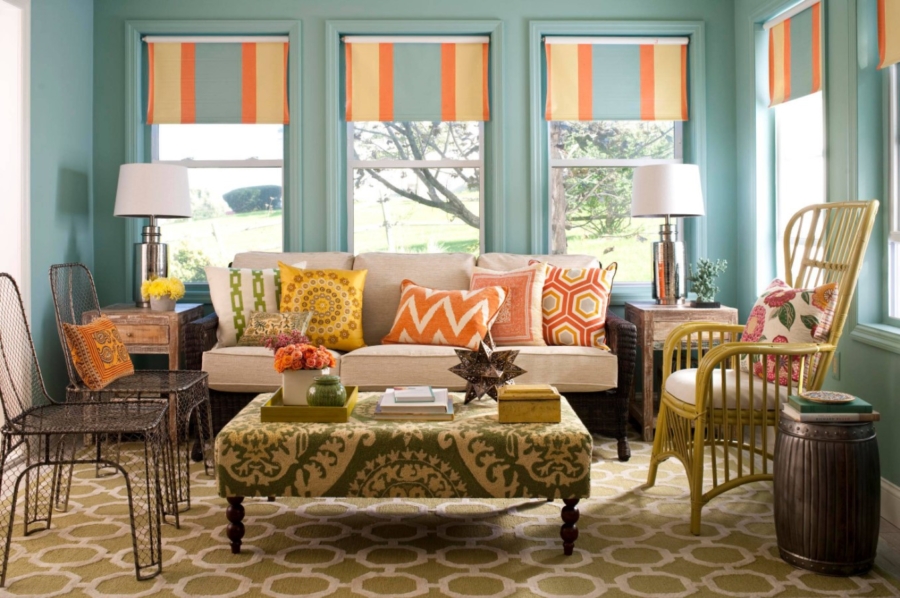 Дизайнеры рекомендуют в этом случае отдать предпочтение ярким и выразительным изделиям, которые помогут сделать всю обстановку более упорядоченной либо подобрать подушки, дублирующие по цвету и фактуре другие предметы интерьера.