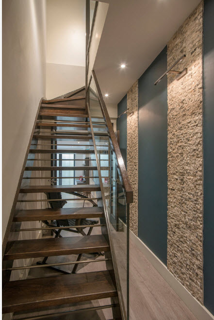 Наибольшее распространение получило фрагментарное использование отделочного камня при оформлении прихожей. Дело в том, что в большинстве российских квартир прихожая представляет собой небольшое помещение без источника естественного освещения (часто комната еще и форму имеет неправильную). А в небольших пространствах обилие каменной отделки может сослужить плохую службу – визуально уменьшит объемы помещения и создаст гнетущую атмосферу. Если располагать каменную отделку в виде нешироких вертикальных полос, то можно не только разнообразить оформление стен прихожей и привнести изюминку в дизайн помещения, но и визуально увеличить высоту потолка небольшой комнаты.