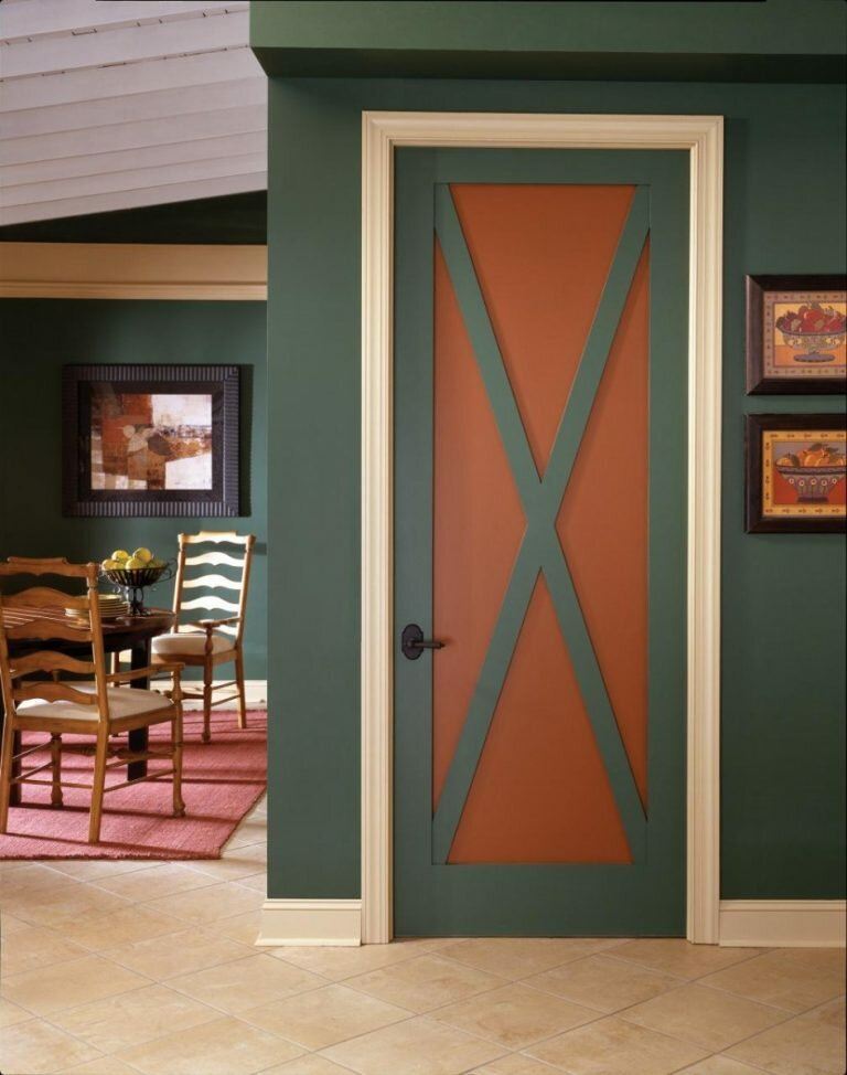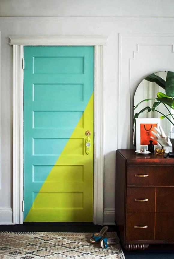 - Открутите дверные ручки, а затем покрасьте дверь в цвет по вашему выбору.
