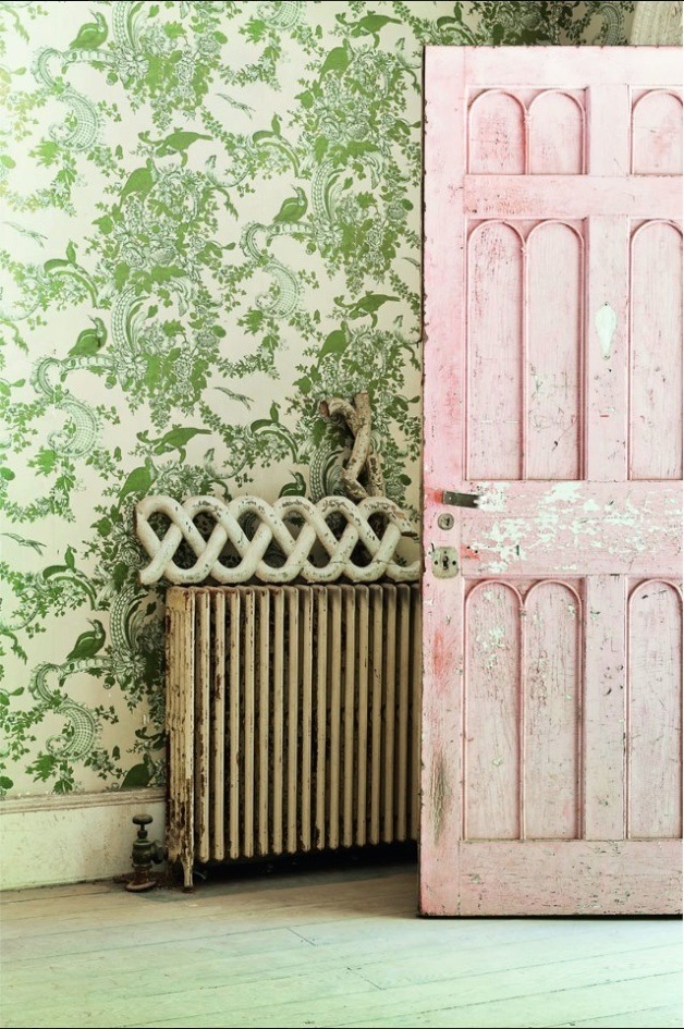Цветочное украшение позволит превратить обычную белую дверь в смелый элемент дизайна интерьера. Двери, обитые цветочной тканью, будут сочетаться со стеной пастельного цвета, что смягчит их выразительность. Посмотрите, как сделать этот уникальный декор для межкомнатных дверей.