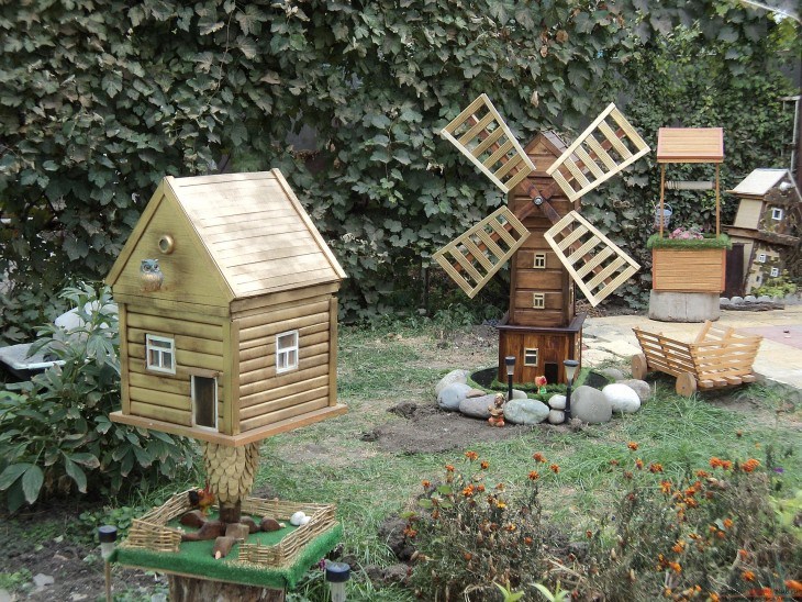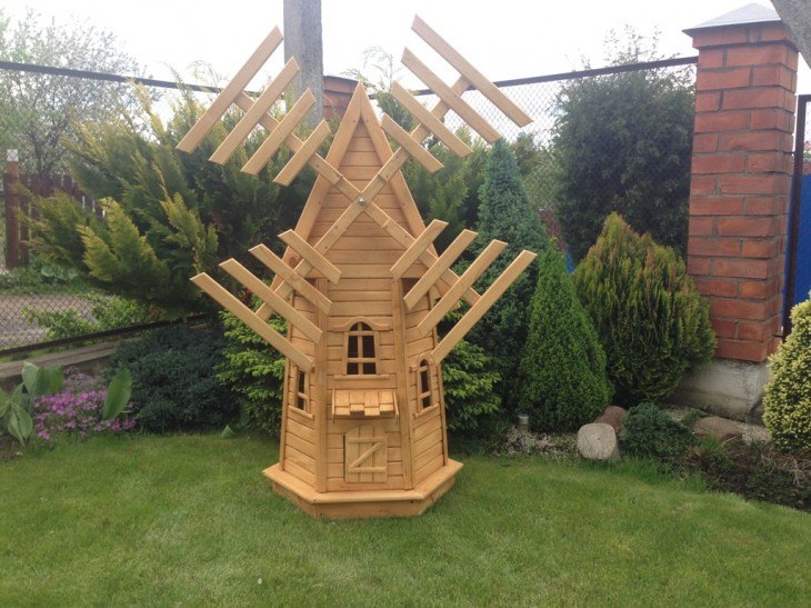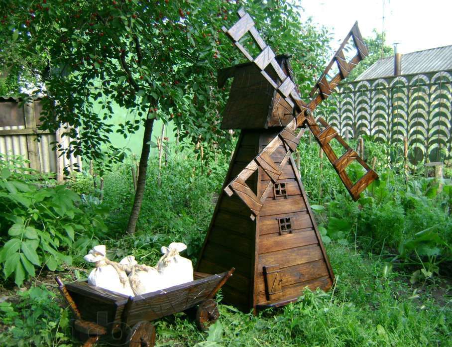 Владельцы дома или дачного участка не понаслышке знают, что для создания привлекательного внешнего вида всей территории нужно приложить немало усилий. Как минимум, необходим базовый уход за газоном. Ну и конечно же, не стоит забывать о ландшафтном дизайне и дополнительном декоре свободного пространства. В специализированных магазинах представлено огромное количество самых разных вариантов. Но все же предлагаем самостоятельно сделать стильный, оригинальный декор в виде мельницы.