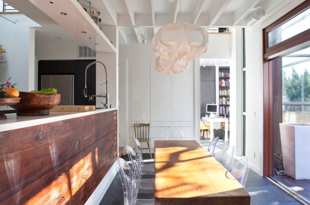 Данное название в переводе с английского языка – высокие технологии (hi-tech – сокращение от high technology). Этот стиль имеет значение художественного осмысления высоких технологий. Здесь ярко выражена пропаганда эстетики материала. Именно поэтому мебель из массива дерева в стиле хай-тек так великолепно вписывается в современные интерьеры. Она красива, изящна и неповторима. Для данного направления важно тщательно продумывать формы и пропорции предметов мебели. Не приветствуются украшения, зато это компенсируется естественными качествами материала: неповторимый рисунок древесины, натуральные цветовые переходы, контрасты и так далее. При всей своей максимальной функциональности, деревянная мебель в стиле хай-тек имеет как простые геометрические, так и самые экстравагантные и нетрадиционные формы.