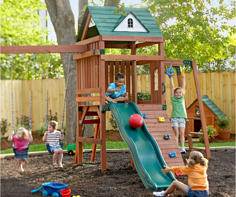 - размер самого игрового комплекса должен находится в соответствии с возрастом и ростом ребенка. Если для дошкольника достаточно горки для скатывания высотой 2 метра, то для школьников и подростков эту величину необходимо «поднять» до 3-3.5 метров. Размер песочницы, портативного бассейна и других элементов должен соответствовать количеству детей в семье и их возрасту.
