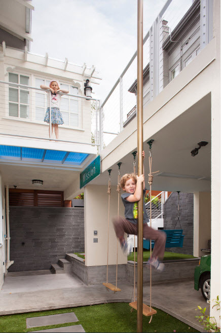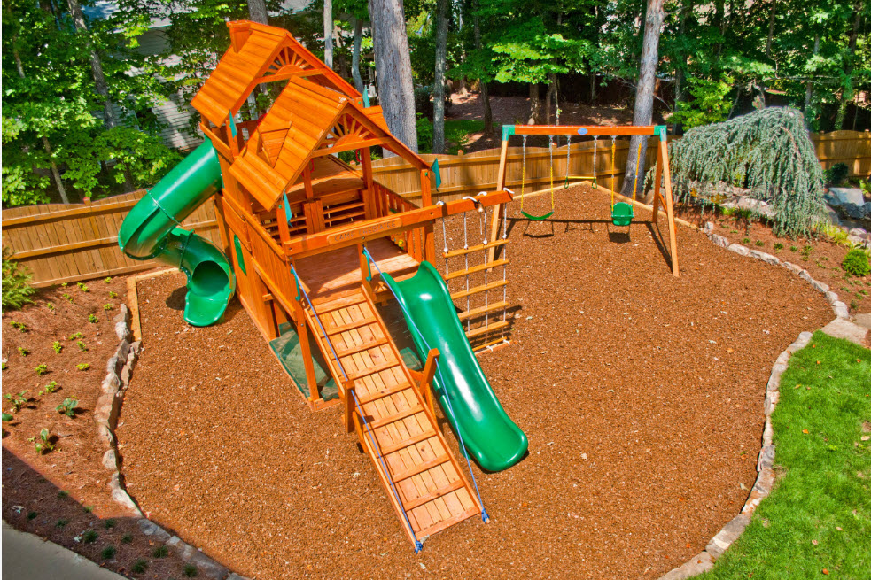 Помимо этого, необходимо оставить небольшой запас в пространстве игровой площадке с учетом детей, которые могут прийти в гости. В этом плане готовые игровые комплексы освобождают вас от необходимости расчетов для эргономичного и безопасного расположения всех элементов. Позаботиться нужно будет только о свободном пространстве вокруг всего комплекса.