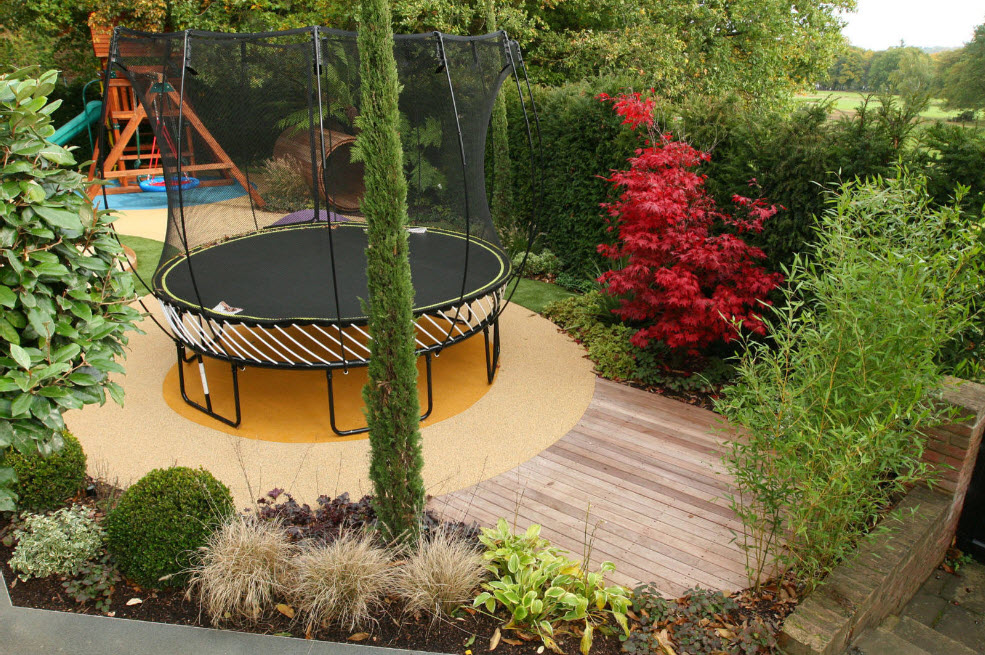 Еще одним важным аспектом с точки зрения безопасности и комфорта использования является правильный выбор покрытия для детской площадки. Оно должно быть нетвердым (не травмировать ребенка в случае падения, а дети обязательно будут падать, этот факт нужно просто принять и постараться снизить риски), нескользким, экологичным и простым в обслуживании. Для покрытия игровой площадки на даче или в частном двое наиболее часто используются следующие варианты: