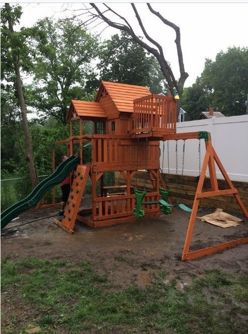- не имеет смысла располагать площадку в овражистых местах, на склонах, в местах протекания грунтовых вод (после дождя площадка долго будет высыхать, да и постоянная сырость не добавит комфорта от использования комплекса);