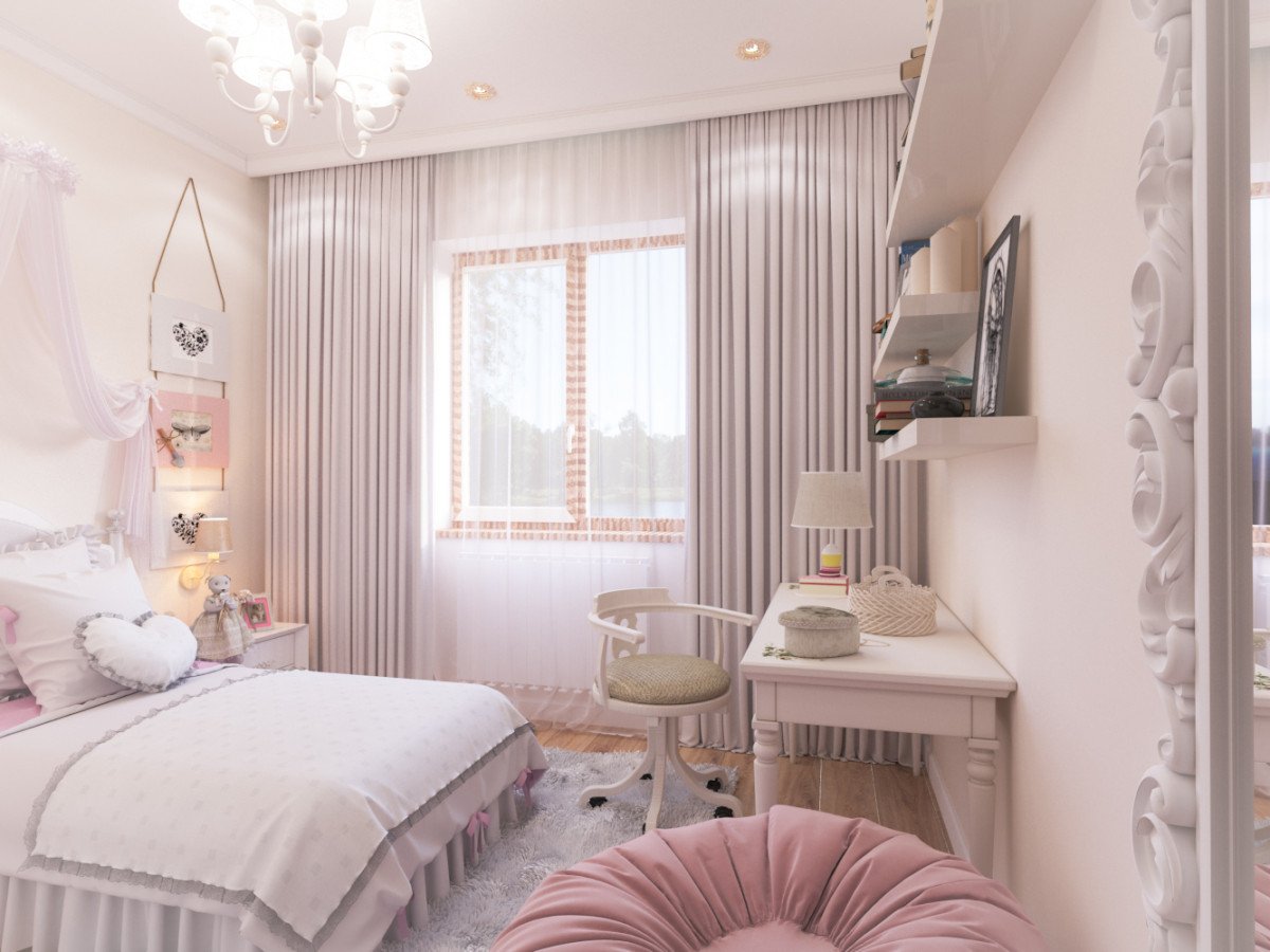 Цветовая палитра комнаты для более спокойных личностей должна быть светло-розовых, белых, пастельных тонов. Для творческих девочек подойдут яркие цвета: оранжевый, красный, фиолетовый, бирюзовый.