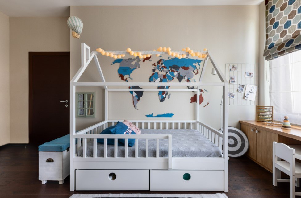 Еще один немаловажный фактор, о котором стоит задуматься – это безопасность. Важно, чтобы твердые края мебели не имели острых углов или слишком выступающих элементов. Если у Вас двое и более детей, то необходимым классическим атрибутом мебели станет выдвигающаяся или двухъярусная кровать для экономии пространства.