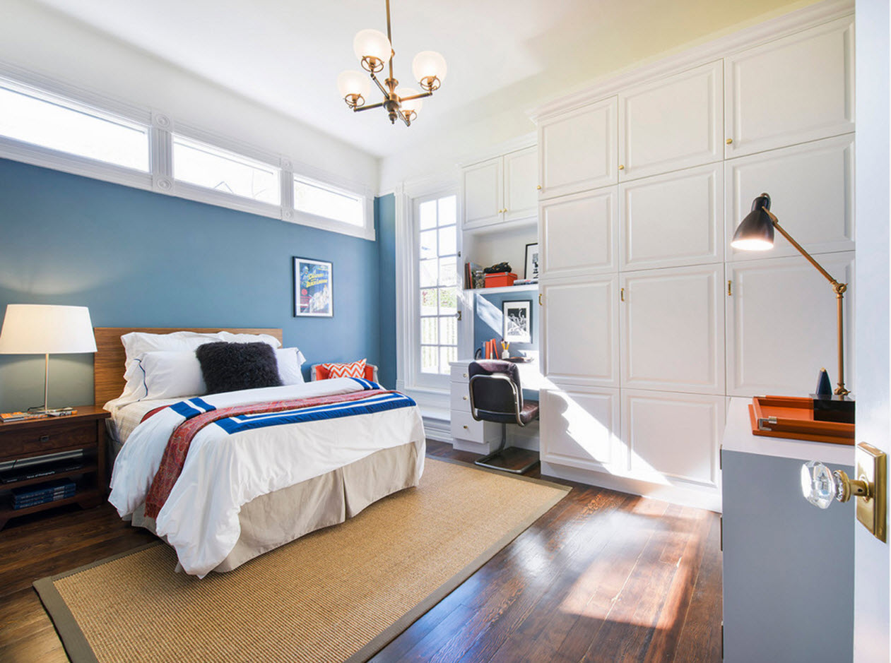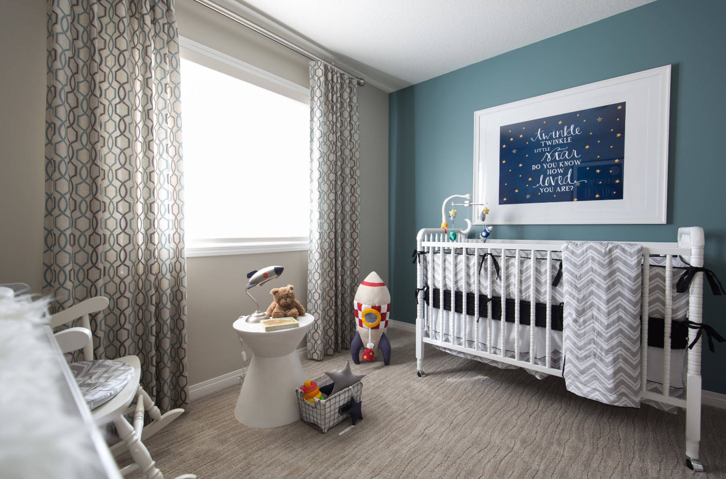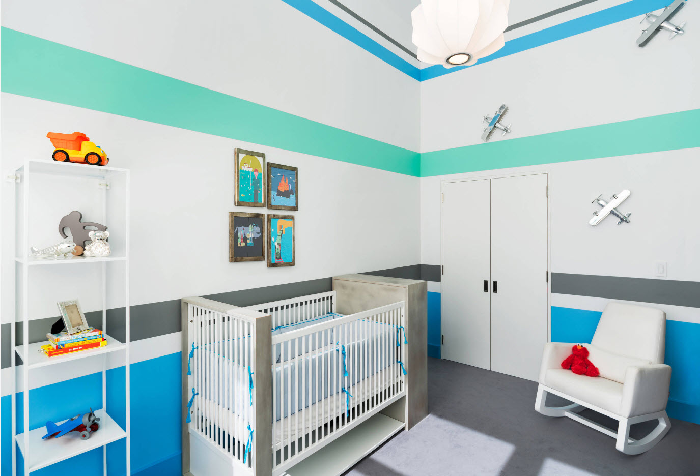 Использование метода акцентной поверхности можно начинать уже с комнаты для младенца. Любое из цветовых отступлений от светлой палитры будет бросаться в глаза, и подчеркивать геометрию комнаты. Специалисты рекомендуют остановить свой выбор на спокойных оттенках синего, темно-зеленого, горчичного, серого и даже цвета молочного шоколада. Опасайтесь очень ярких вариантов красного, оранжевого и желтого цвета.