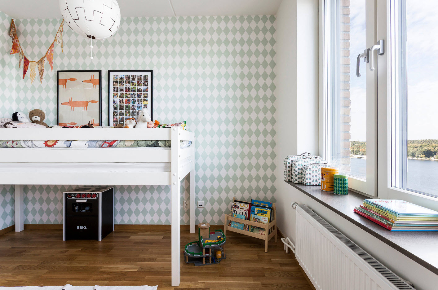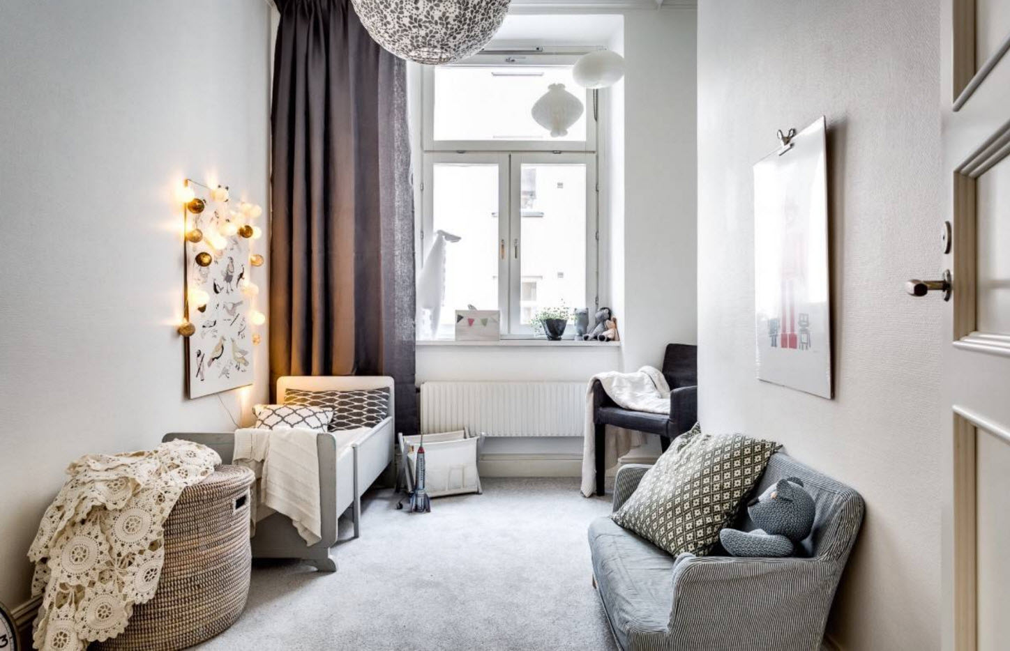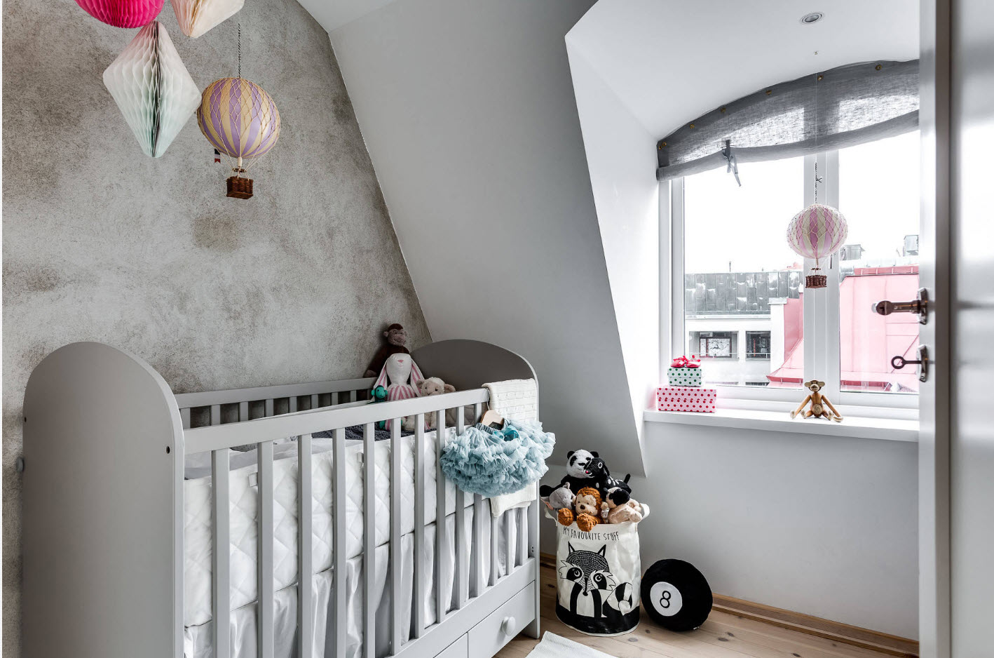 Простота и лаконизм, практичность и удобство использования всех элементов интерьера, комфорт и уют, достигаемые минимальным количеством меблировки и декора – вот основные мотивы, которые свойственны оформлению помещений в скандинавском стиле. Если вам нравится «уютный минимализм», который покорил все страны Северной Европы, то оформление комнаты для ребенка может стать успешным вариантом воплощения ваших представлений о красоте и практичности. Почти в 100% случаях оформления комнат в скандинавской стилистике, используется белый цвет для отделки стен. Небольшое помещение с маленьким (стандартным) окном чаще всего нуждается именно в такой светлой цветовой гамме. Белый тон поможет не только создать визуальное увеличение объемов комнаты, но и будет способствовать распространению естественного освещения, станет идеальным фоном для любой мебели и аксессуаров.