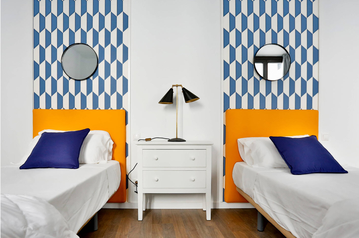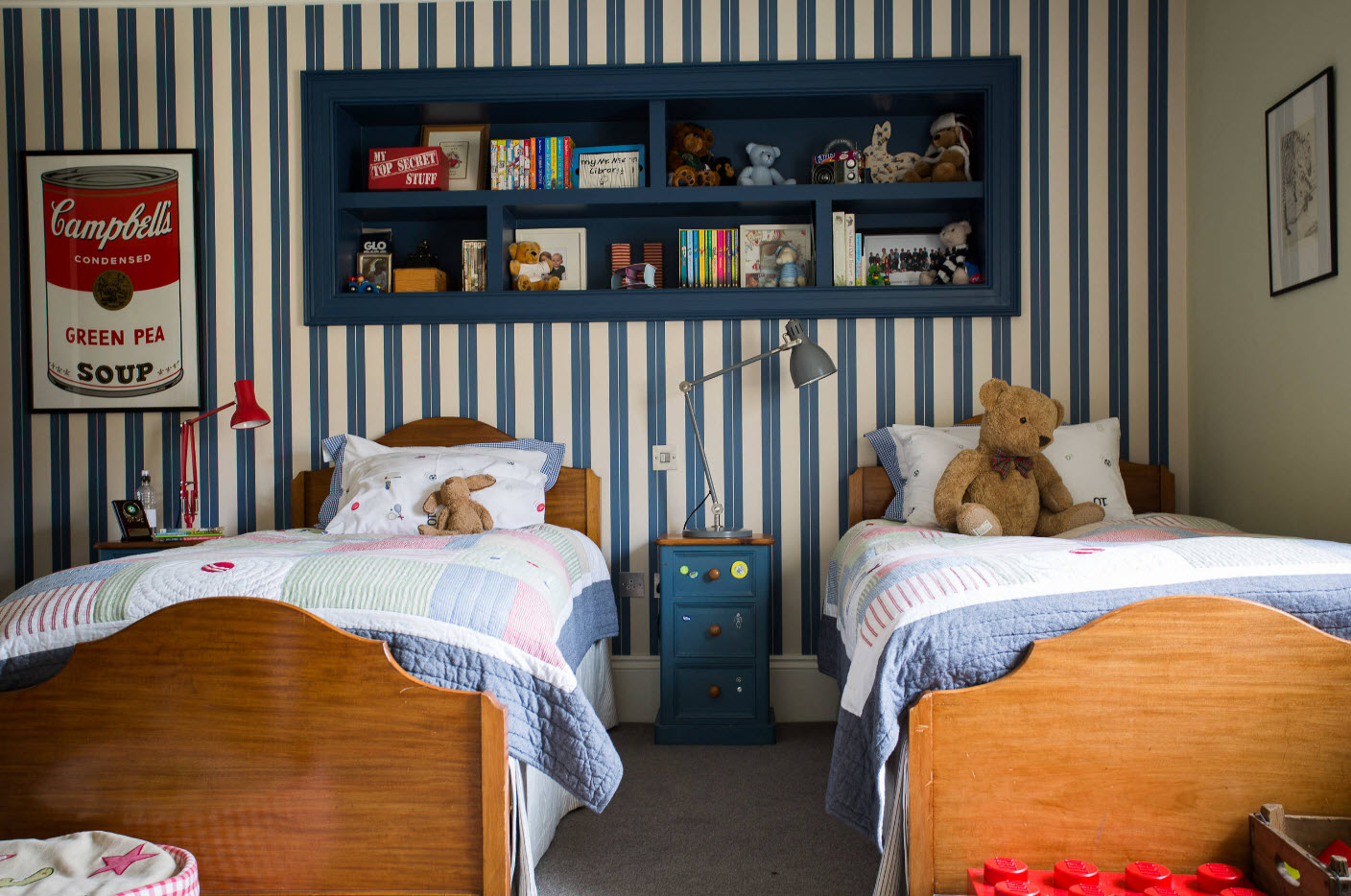 Самыми габаритными предметами мебели в комнате для двоих детей являются кровати. Именно от их расположения зависит планировка всего помещения. В этом случае расположение спальных мест будет зависеть от разницы в возрасте и поле детей, их взаимоотношений. В некоторых случаях кровати, установленные параллельно и разделенные лишь прикроватной тумбой или небольшим комодом станут отличным вариантом. В других ситуациях кровати необходимо устанавливать максимально далеко (насколько это позволяет площадь комнаты) друг от друга. К какому бы решению вы не пришли, необходимо у каждого спального места оборудовать источник искусственного освещения или небольшую систему хранения.