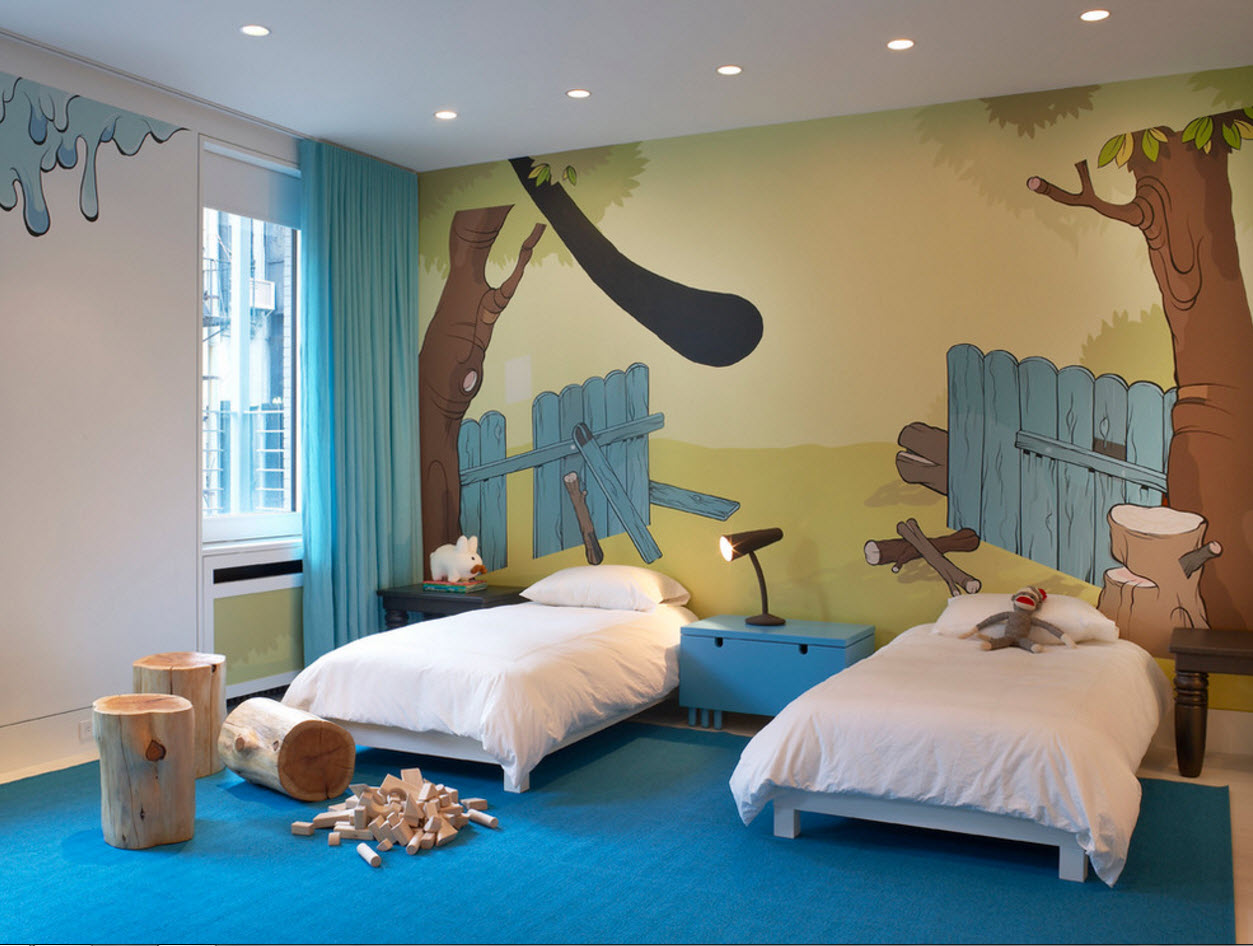 Если говорить о тематическом оформлении комнаты для мальчика, то мода на персонажей мультфильмов, сказок и комиксов постоянно меняется. Но в непрерывном потоке любимых героев есть и темы, которые актуальны вот уже многие годы. Если ребенок активно занимается спортом, то можно «обыграть» эту тему при оформлении – сюжетные обои, 3D фотопечать на полотнах для одной из стен, текстильное оформление спального места или окон в соответствующем ключе – нет ничего невозможного, ведь современные производители радуют нас многообразием коллекций предметов интерьера и отделочных материалов.
