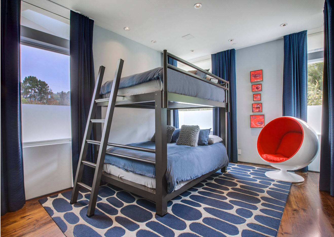 В небольшой комнате единственно возможным вариантом расположения полноценных спальных мест для двоих детей становится монтаж двухъярусной кровати. О том, сколько полезного пространства экономят подобные конструкции, говорить не приходится. Особенно, если учесть, что практически все современные модели оснащены системами хранения в нижней части спальных мест или под ступенями лестницы, ведущей на верхний ярус. Вся конструкция достаточно массивна и неизбежно становится координационным центром любого интерьера, вокруг которого выстраивается остальная меблировка помещения. Поэтому дизайнеры рекомендуют выбирать светлые породы древесины или окрашенные в нейтральные, пастельные тона (чаще всего белый цвет) двухъярусные кровати.