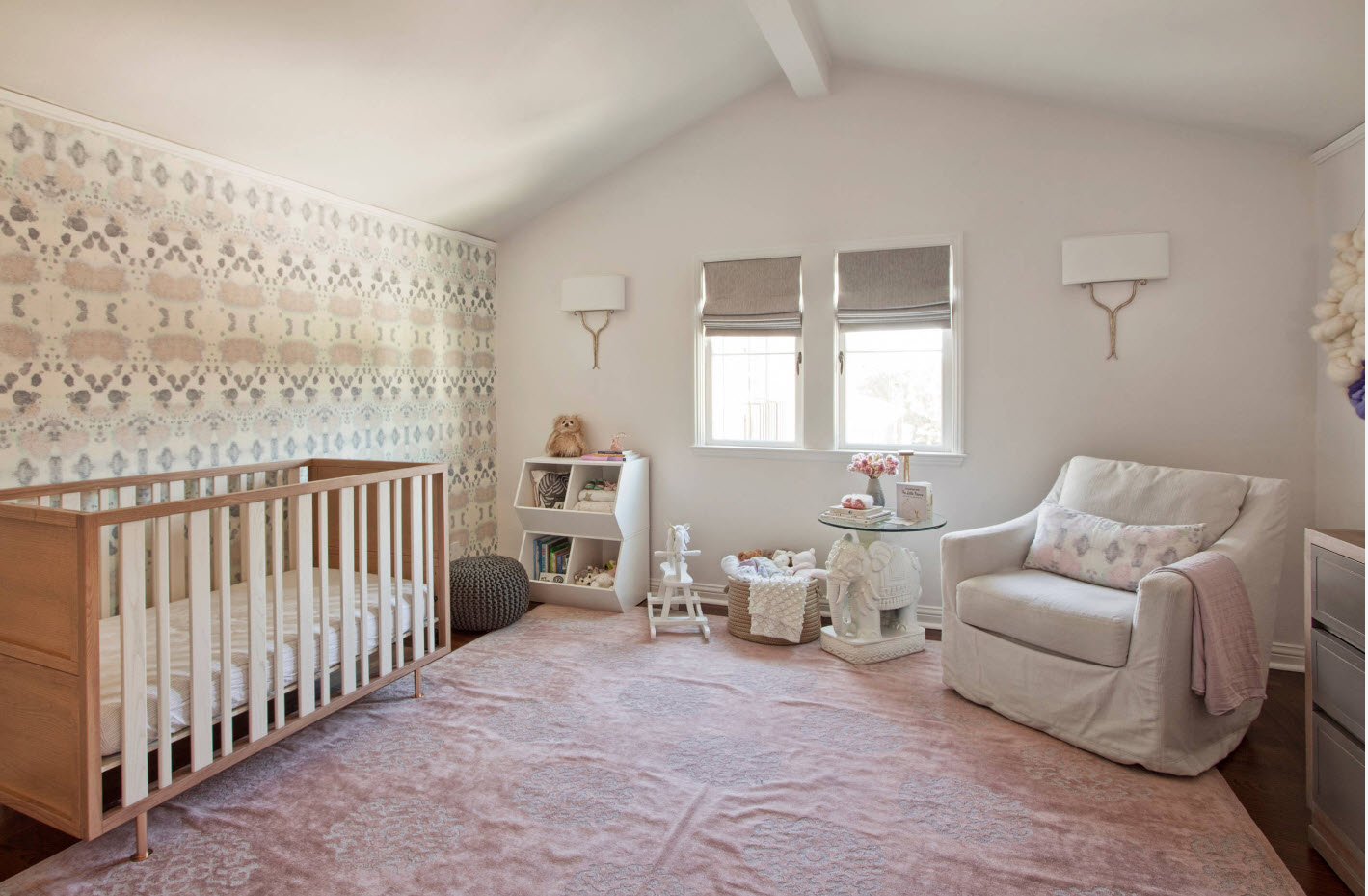 Интерьер комнаты для новорожденного должен быть максимально простым. Светлое и теплое (но не жаркое) помещение должно включать только самые необходимые предметы меблировки и аксессуаров. Комнате необходимо «дышать», а не «задыхаться» от обилия предметов интерьера, декора, текстиля. Детская кроватка, комод с пеленальным столиком и кресло (лучше всего «качалка) для родителей – вот оптимальный набор основных участников обстановки комнаты для младенца. Безусловно, необходимо будет позаботиться о качественном искусственном освещении. Обойтись только центральной люстрой не получится, необходим, по крайней мере, еще точечный источник света в зоне пеленания.