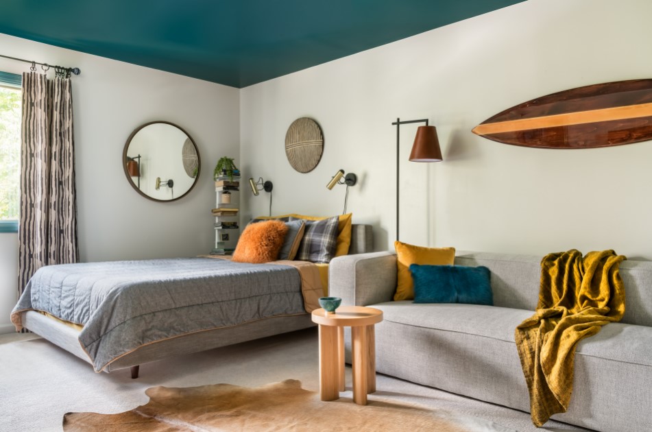 Отличная идея для детской комнаты – оборудование небольшого детского домашнего кинотеатра с большим телевизором или проектором и уютными креслами-мешками.