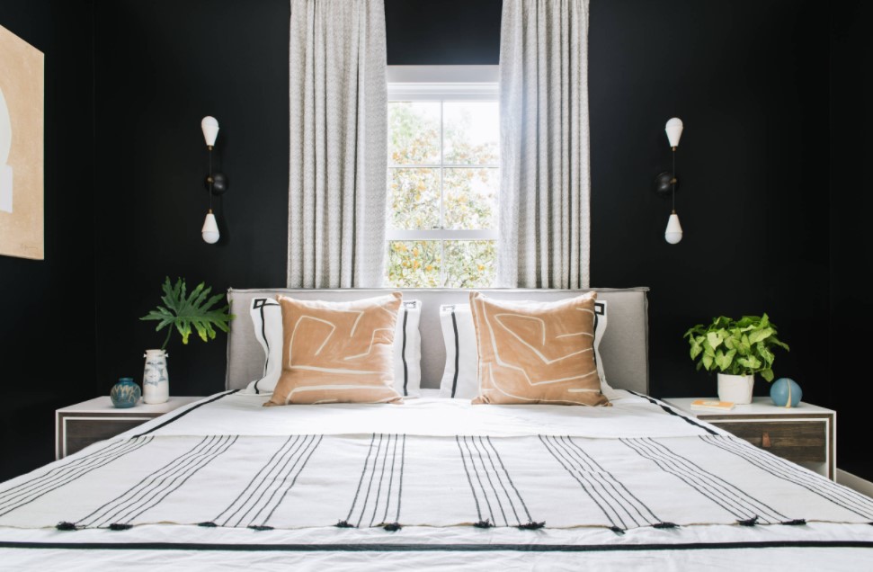 Чёрные обои для спальни