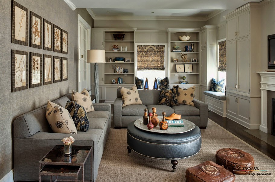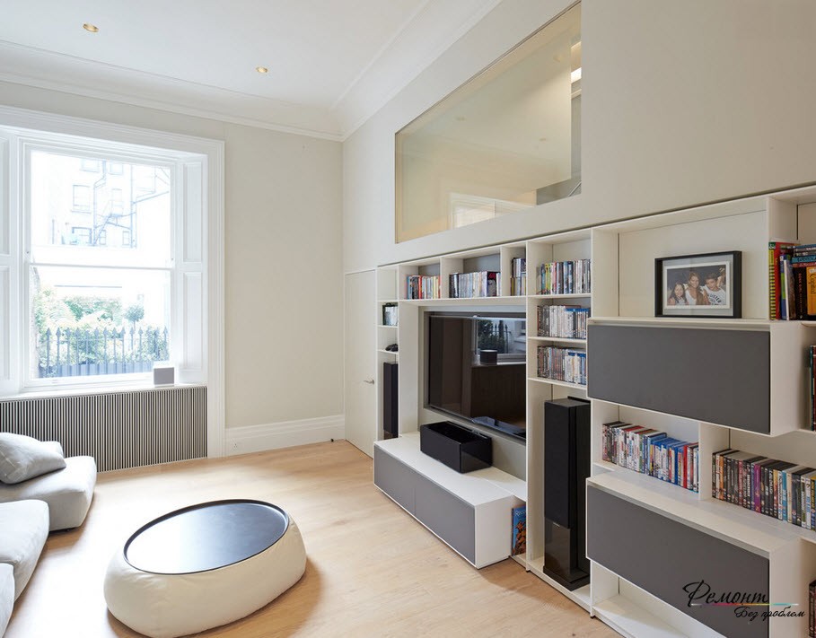 Ниши. Эти встроенные полочки как ничто другое способны сэкономить значительное количество места и при этом позволить поместить необходимые предметы. К тому же не придется загромождать гостиную старомодными стенками, сервантами, шкафами и тумбочками. Конечно, шкафы и тумбочки все же могут быть, но уже более скромных размеров.