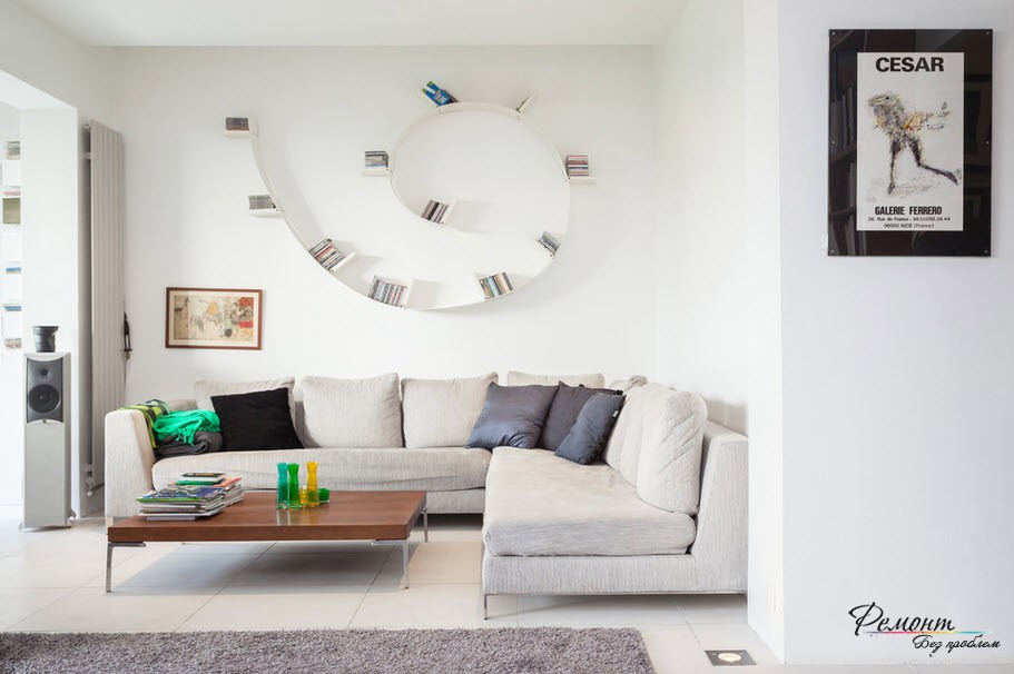 Любая комната, будь она советской постройки или современной, может быть одинаково стильной и грациозной. Просто украсьте ее необычными полками или затейливым рисунком на стене.