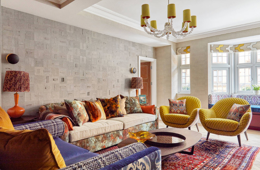 А что касается общих тенденций, прослеживающихся в грядущем сезоне для оформления гостиных, то можно выделить следующий список трендов: