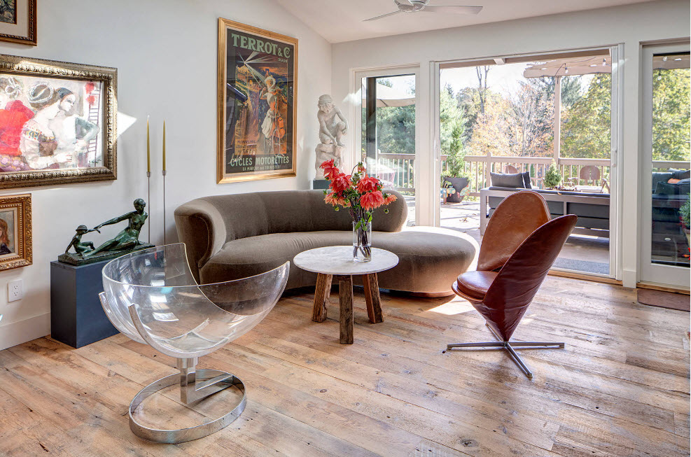 Это может быть оригинальный дизайнерский кофейный столик, необычная люстра, очень яркое кресло или вовсе скамейка, которую можно встретить в парке. Большой популярностью пользуются эксклюзивные предметы интерьера, созданные на заказ или руками хозяев жилища. Например, в роскошную раму, достойную полотна великого художника, помещается большой рисунок ребенка. Или возле строгой по исполнению, практически офисной мягкой мебели устанавливается столик-подставка, которую хозяин сам выстругал из найденного полена.