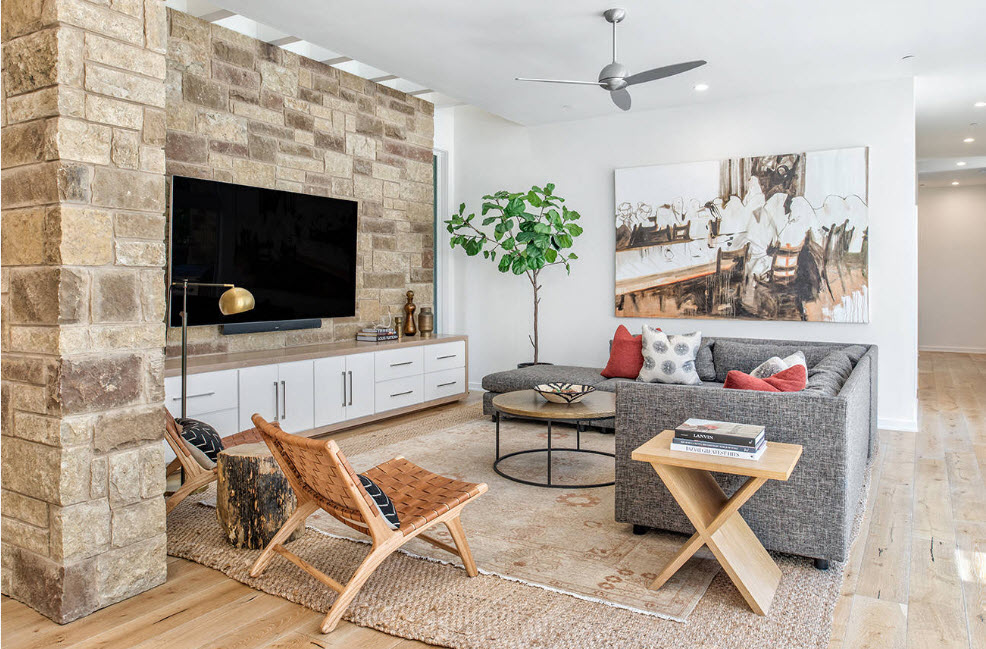 - мода на экологичность не пройдет никогда, потому что связана с безопасностью материалов для человека и окружающей среды. Ничто в современной гостиной – от отделочных материалов до текстиля не должно наносить вред хозяевам жилища и природе;