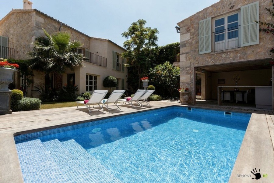 Предлагаем вам окунуться в мир испанских интерьеров и экстерьеров. Рассмотрим особенности обустройства жилья в южных странах, где солнце невероятно яркое, небо чистое, а морские волны лазурные. Даже если состоятельный испанец живет не на берегу моря, он всегда может устроить собственный маленький водоем на заднем дворе частного домовладения. Именно о таком жилище, с бассейном на территории двора, пойдет речь в данной публикации. Попробуем впитать яркость испанского солнца и особенности местного колорита с помощью мини-экскурсии по фото-галерее южного жилища. Экстерьер испанской виллы достаточно стандартен и не выделяется среди своих собратьев по улице – песочно-бежевые стены из камня со светлой затиркой, белоснежные ставни на окнах и массивная деревянная дверь с металлической фурнитурой и дизайном под старину.