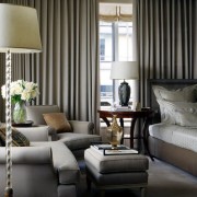 Шторы выполняют исключительно функциональную задачу и могут быть классическими полупрозрачными, без ламбрекена и декорирования, или же современными: роллеты, жалюзи и экраны.