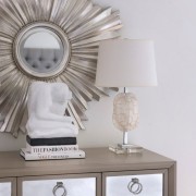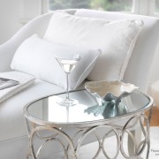 Декор и аксессуары. Использование аксессуаров умеренное. Стеклянные вазы и статуэтки геометрической формы. Особое внимание отводится зеркалам и зеркальным поверхности в целом. Можно использовать стандартные формы крупных настенных зеркал или же дополнять интерьер с помощью аппликаций из зеркальной мозаики.