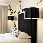 Стилистика осветительных приборов так же незаурядна, как и весь интерьер в целом. Яркие выразительные люстры и бра, должны выступать логическим акцентом в интерьере.