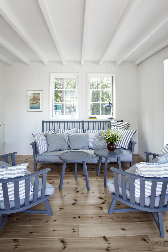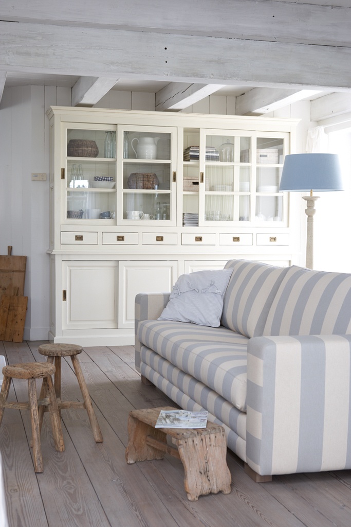 Полоски. При выборе мягкой мебели, которая замечательно вписалась в комнату, выполненную в морском стиле, стоит отдать предпочтение полосатым или же однотонным обивкам соответствующей цветовой гаммы с обязательным присутствием на ней подушек, с рисунком в виде гальки, морской звезды или спасательного круга. Из рисунков и орнаментов при создании морского дизайна лучше отдать предпочтение полоске любой ширины или волне.