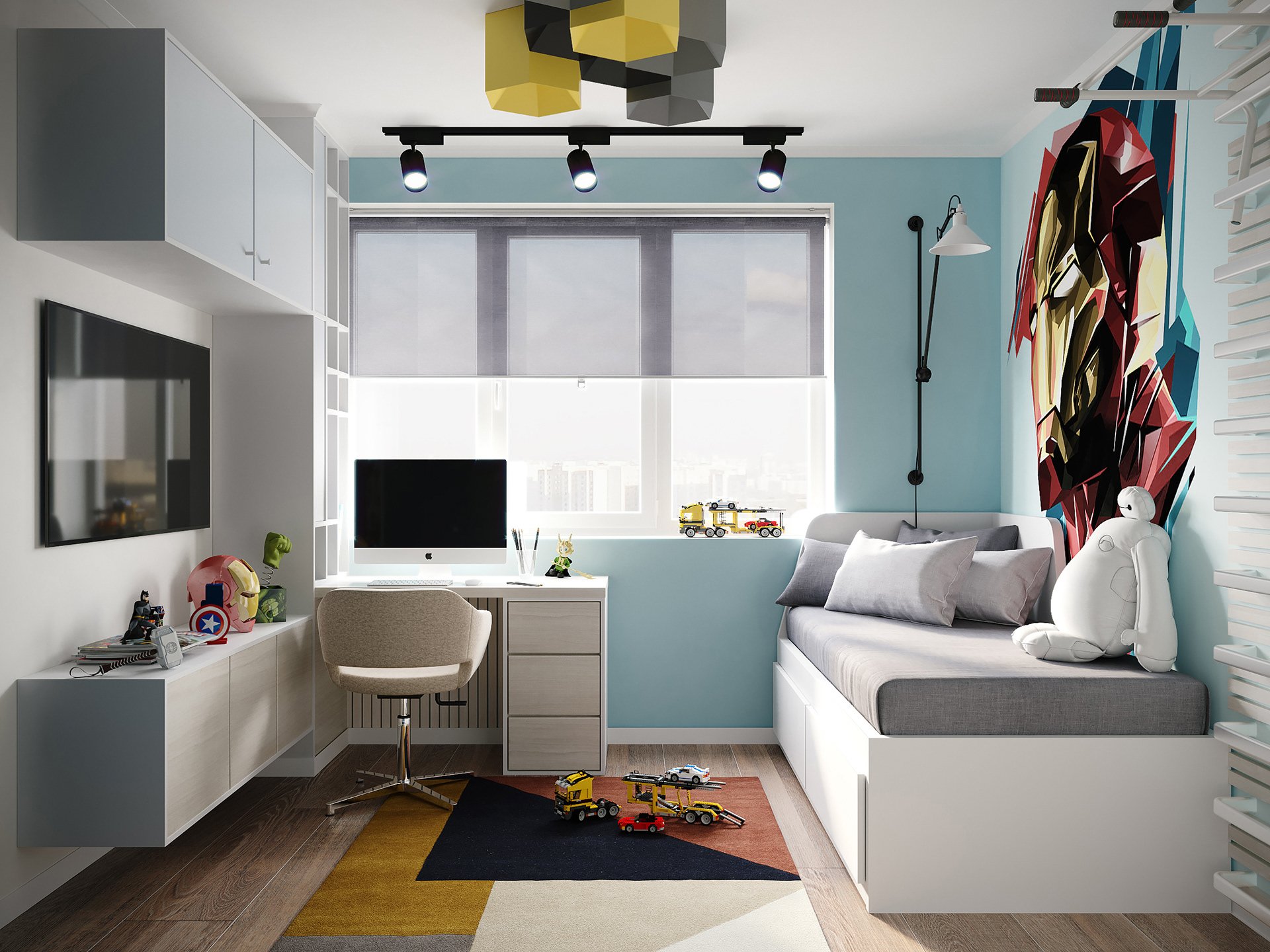 Квадратная детская комната для мальчика