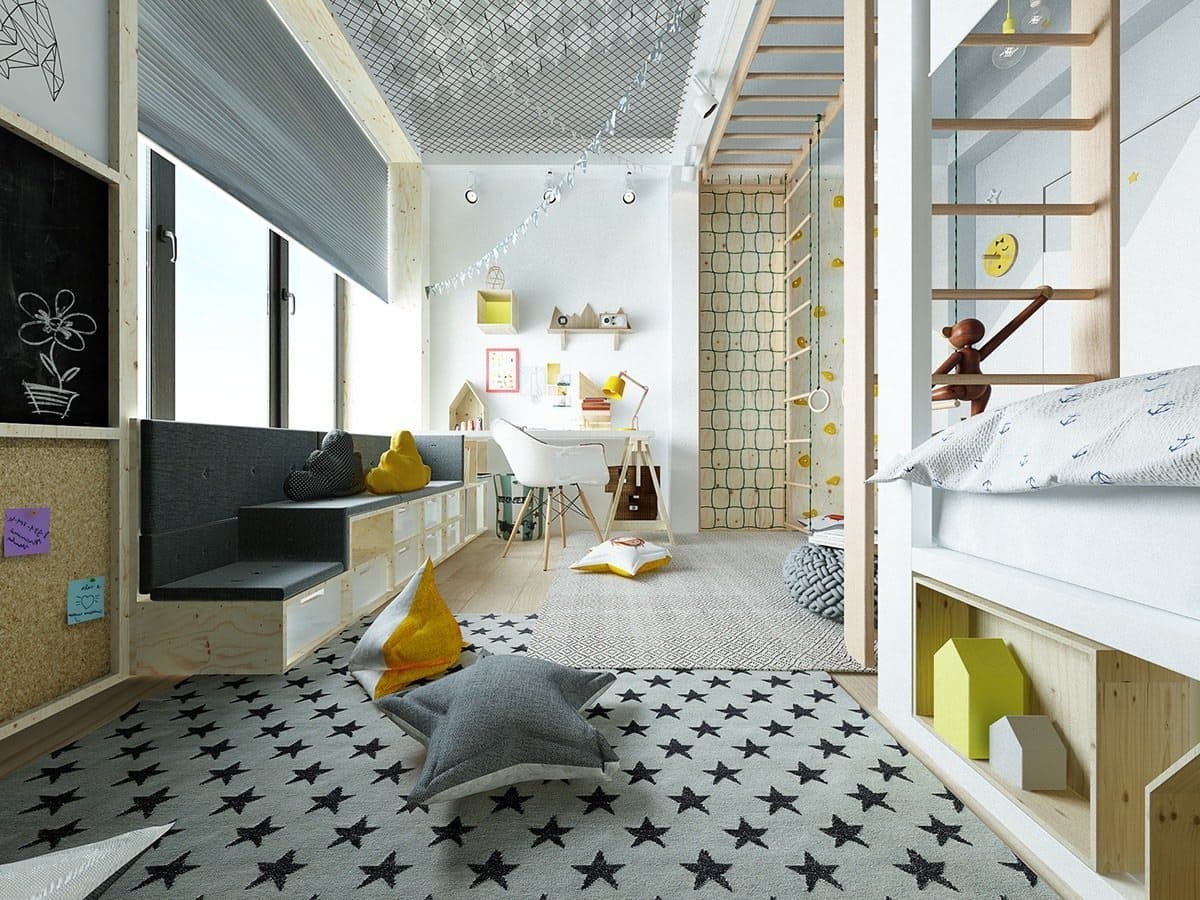 Модный дизайн квадратной детской комнаты