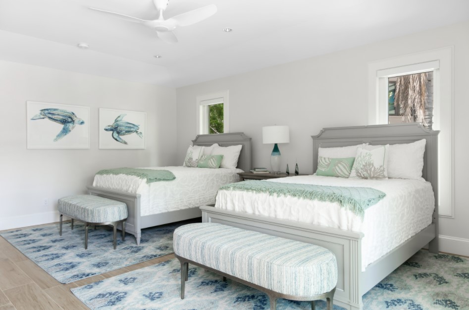 В детской комнате для двух деток рекомендуется ставить двухъярусную кровать. Также в таких комнатах лучше предусмотреть модульной мебелью, которая будет экономить место. При оформлении рекомендуется выбирать какие-то современные стили, так как они терпимо выглядят при общем беспорядке, который неизбежен.