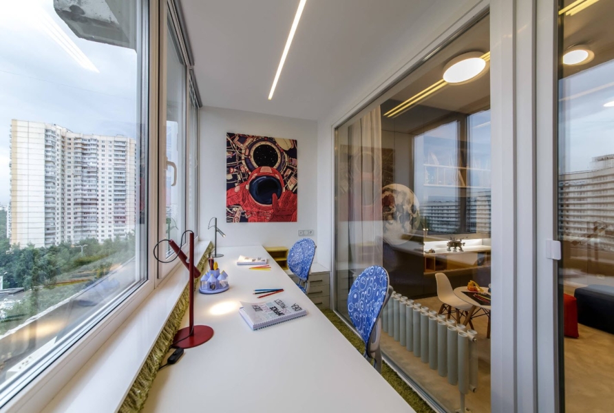 Вы можете использовать лоджию в качестве дополнительных квадратных метров для расширения прилегающей комнаты. Расширяйте жилое пространство гостиной, детской, кухни или спальни. В результате этого увеличите комнату, используя большие окна лоджии, которые будут наполнять пространство дополнительным светом. Стекла можно завесить шторами или жалюзи, придавая помещению нотки интима.