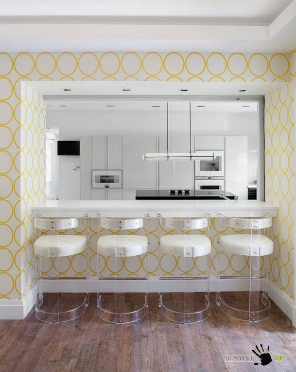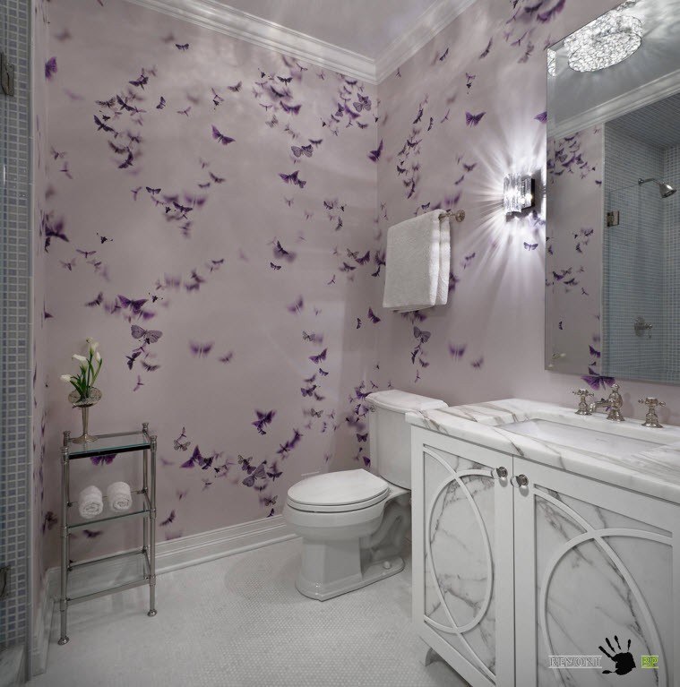 Виниловые обои можно встретить в отделке кухни и даже ванной комнаты, потому что этот материал не выгорает под воздействием солнечных лучей и может выдерживать обработку чистящими средствами, влажную уборку. Такие обои можно клеить в прихожих, где уровень загрязнения поверхностей достаточно высок.
