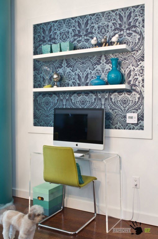 Обои с ярким рисунком можно использовать не только для оформления акцентных поверхностей. Даже небольшие пространства можно оклеить колоритными обоями, все зависит от размера принта и выбранной цветовой палитры.