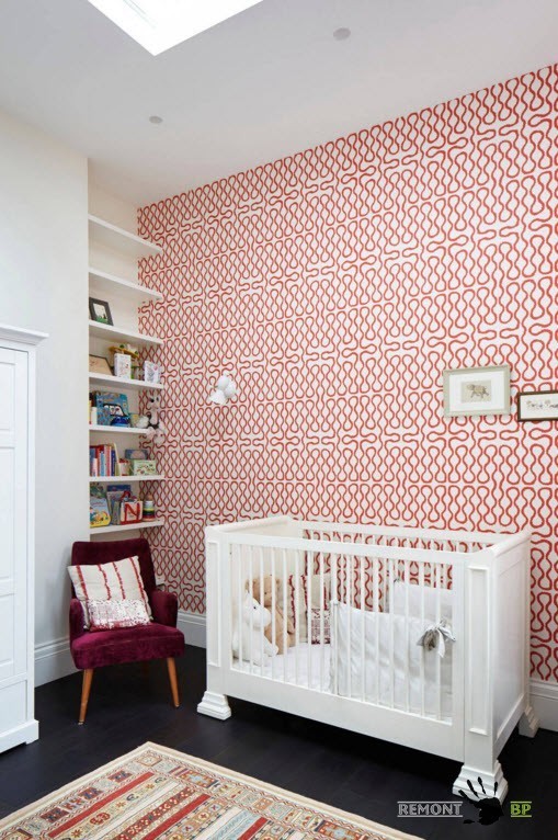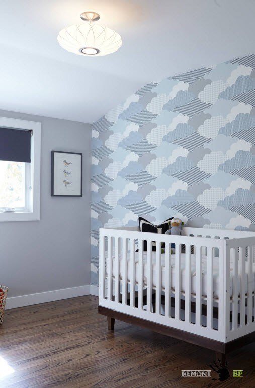 Обои с рисунком, но в спокойной, пастельной палитре отлично подходят для оформления детских и комнат для новорожденных. Нейтральная, умиротворенная палитра будет создавать благоприятную атмосферу для успокоения родителей, а значит и младенец, чувствуя их настрой, будет доволен жизнью и расслаблен.