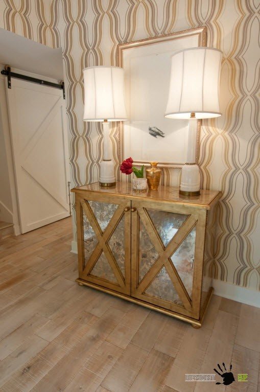 Обои с позолоченными или серебристыми элементами принта декоративной поверхности стоят недешево, поэтому их чаще всего используют для оформления одной из стен помещения, для создания роскошного и при этом утонченного акцента.