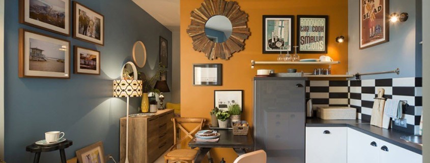 - Для помещений со скромной квадратурой лучше выбирать только настенный декор, драгоценные метры пригодятся для размещения мебели, а свободное пространство необходимо ля ощущения некоторой свободы и легкости – маленькие комнаты очень быстро захламляются.