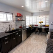 Темное напольное покрытие из плитки является менее марким. Кроме того использование темного облицовочного материала является одной из наиболее популярных тенденций уже многие годы.