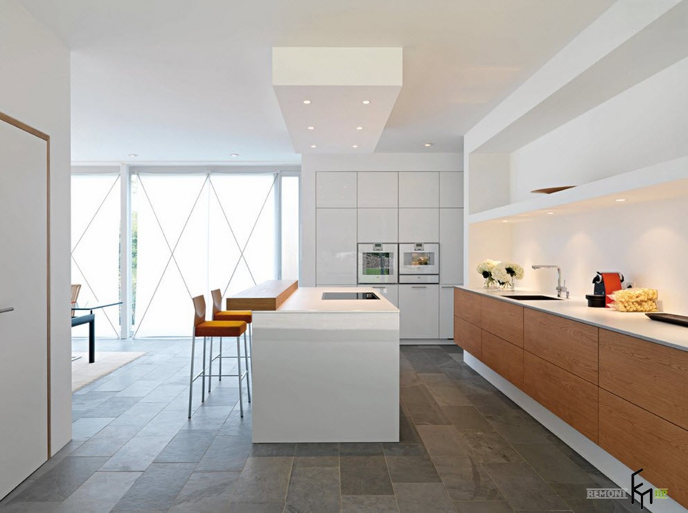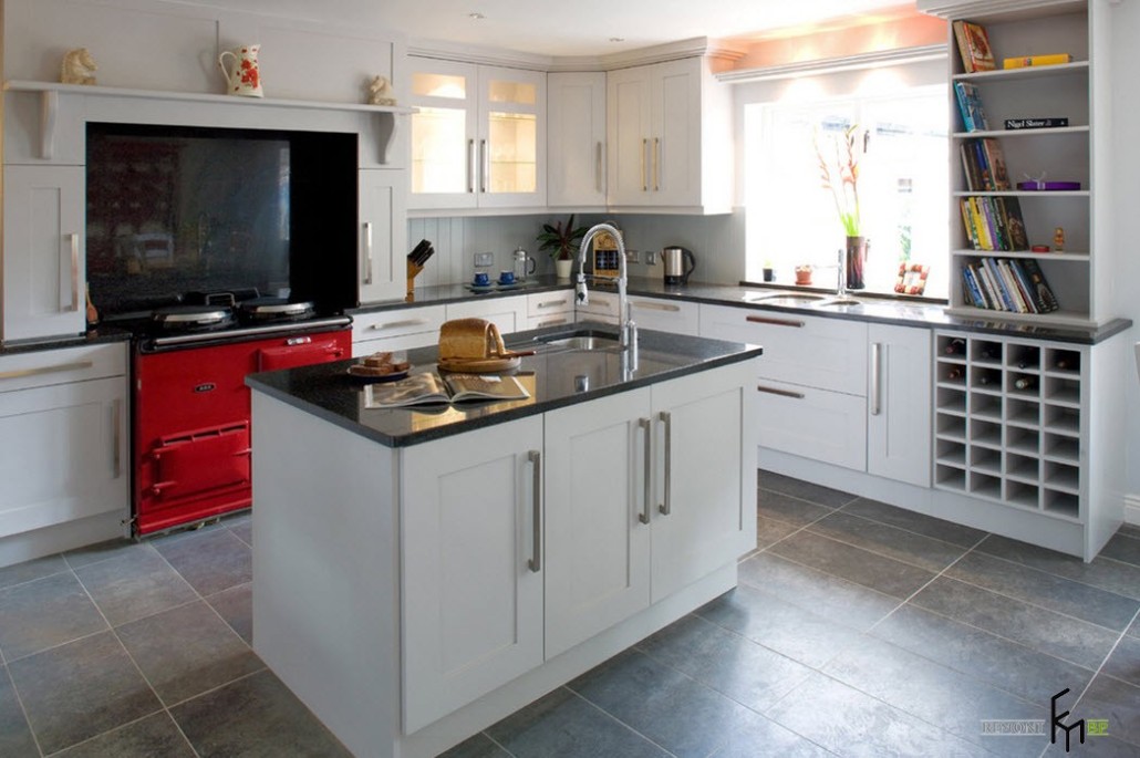 Многообразие форм кафельной плитки также дает простор для фантазии. Более крупные детали подойдут минималистическому стилю или направлению хай-тек. Более мелкие плитки отлично выглядят в кухне в стиле кантри.
