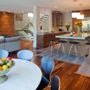 Интересного эффекта удается добиться комбинированием различных оттенков. Обилие цветов, предлагаемых на строительных ранках, позволит добиться идеальной гармонии напольного покрытия с остальными деталями обстановки.