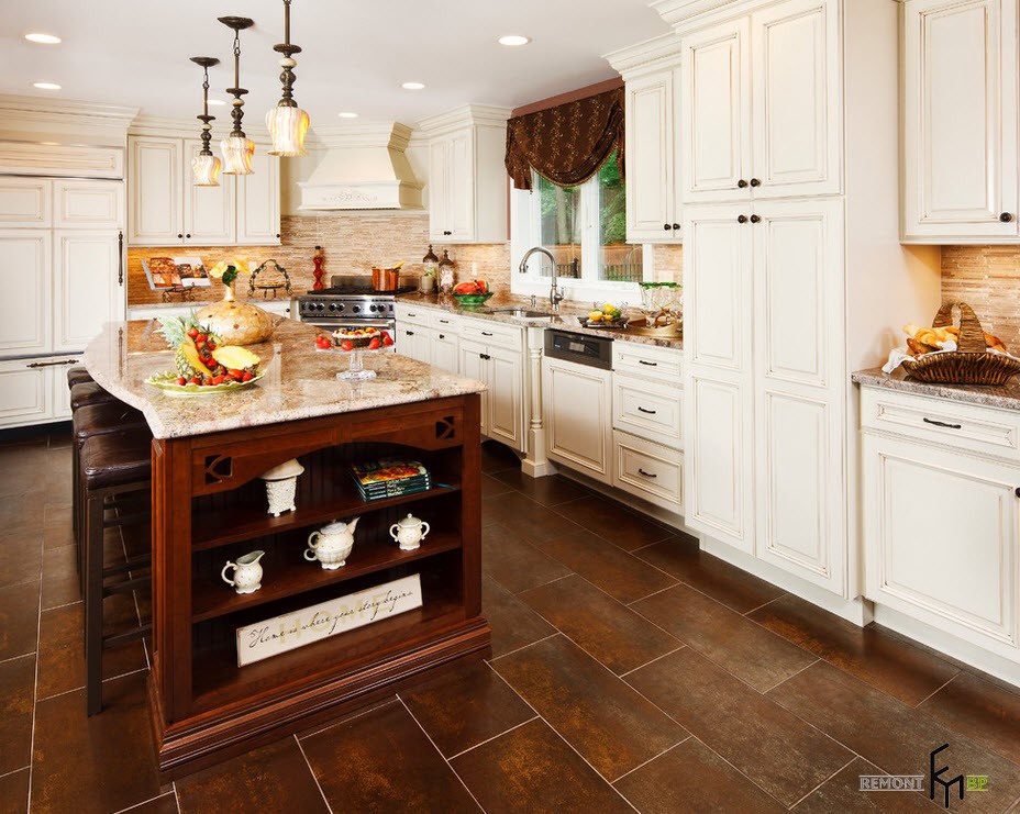 Подбирать дизайн напольной плитки для кухни следует с учетом всех особенностей помещения. Но самым главным критерием должны стать предпочтения хозяина этой кухни.
