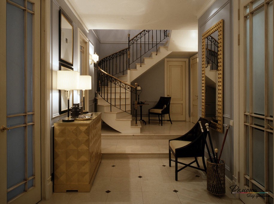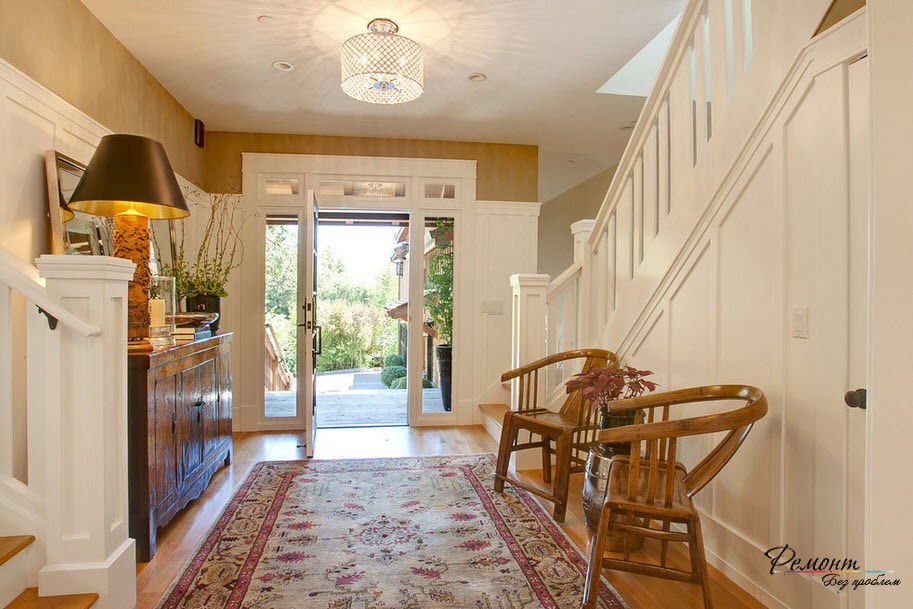 Отличным выходом из этой ситуации будет деление прихожей на две комнаты. Конечно, основное пространство должна занимать прихожая. Во второй комнате вы можете поместить кресло, столик, зеркала, поставить торшер и так далее. Ваша фантазия подскажет, как выполнить дизайн этой комнаты. Он не должен быть уж слишком навороченным. Иначе эффект будет обратным.