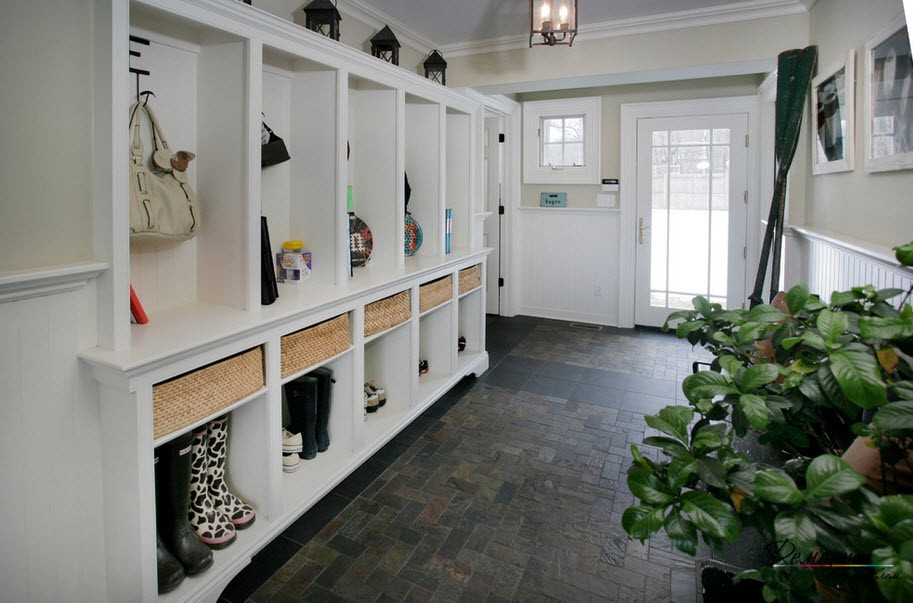 Не следует забывать, что зону прихожей можно выделить отделкой стен разными материалами. Хорошо смотрится прихожая, стены которой отделаны деревянными панелями. Очень практично, потому что прихожая подвержена температурным перепадам, особенно, зимой. Зона прихожей может быть выделена укладкой разных видов полового покрытия. Не забываем при этом, что покрытие должно быть износоустойчивым. Ведь прихожая – самая активная зона в квартире и это надо учитывать при выборе материала.