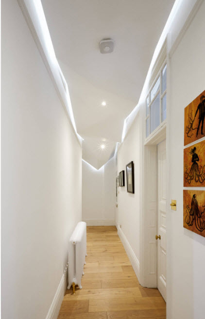 Для того чтобы оформить потолок в прихожей или коридоре дизайнеры рекомендуют выбирать самые простые и универсальные решения. Учитывая особенности формы и размера утилитарных помещений, создавать многоуровневые конструкции, использовать лепнину, фотопринт или просто яркий цвет в дизайне потолка не стоит. Может быть идеально ровный, белоснежный потолок – это не самый креативный вариант оформления, но он точно будет визуально увеличивать высоту комнаты, подойдет абсолютно к любой отделке стен и пола и останется актуальным на долгие годы. А привнести оригинальность в его оформление можно будет при помощи необычных осветительных приборов.