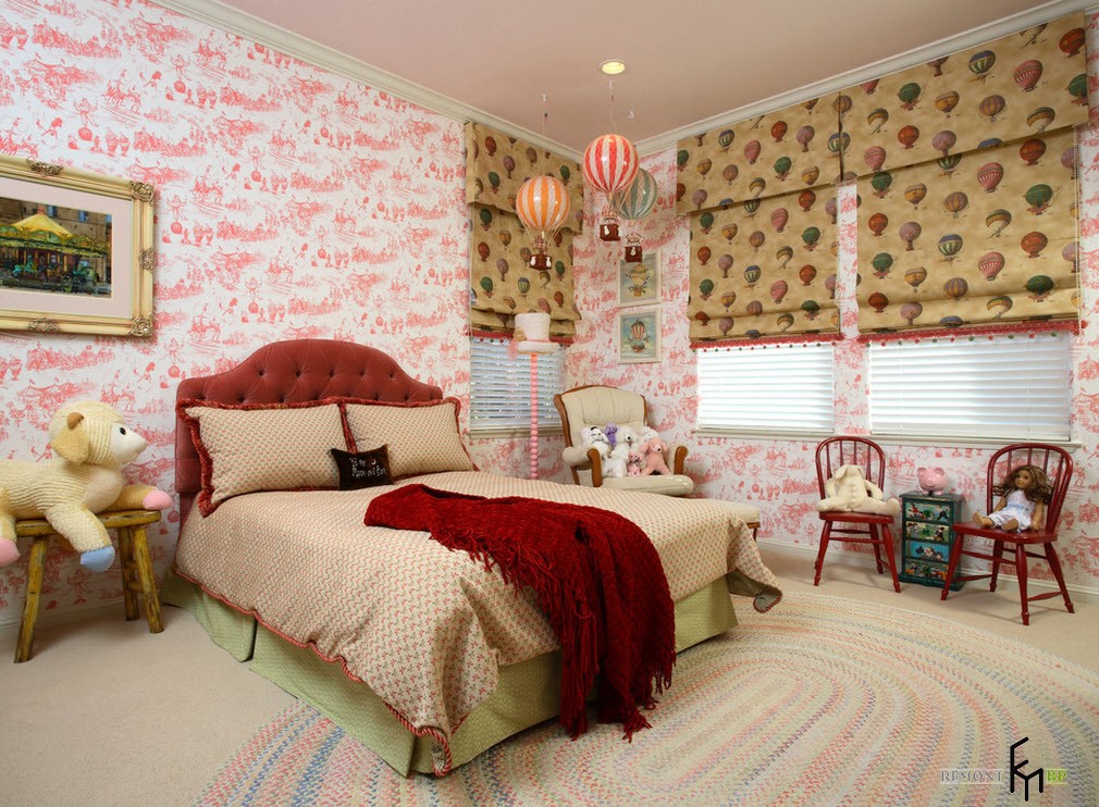 Не стоит забывать и за давно известный вариант оформления, как обои. Оригинальные нежные обои с цветочными узорами идеально подойдут для интерьера детской комнаты для девочки, а вот мальчишкам, наверняка, понравится идея с картой на стене.