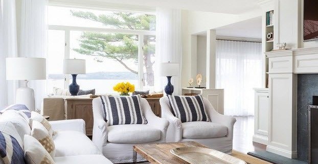 стиИнтерьер в морском стиле – это свежесть, легкость и простота, овеянные запахом моря, дуновением легкого бриза и солнечным светом. Бытует мнение, что морской стиль чаще применим для загородных домовладений, пляжных домиков и роскошных вилл. Но использовать мотивы морской стилистики уместно и в городе, в рамках собственной квартиры или частного дома. При этом нет нужды использовать при оформлении помещений предметы с ярко-выраженной морской тематикой – развешивать канаты или покупать шторы с якорями и штурвалами. Морской стиль многообразен в своих проявлениях, мотивах и способах оформления пространства, но при этом стремится к легкости и простоте. Для того, чтобы оформить комнату или все жилище в этом стилистическом направлении, необходимо придерживаться светлой палитры для отделки поверхностей, использовать природные цвета для исполнения меблировки, часто состаривая материал, а также не забывать о применении полосатого принта и бело-голубых или сине-бежевых вариациях декора, осветительных приборов и прочих элементов интерьера.